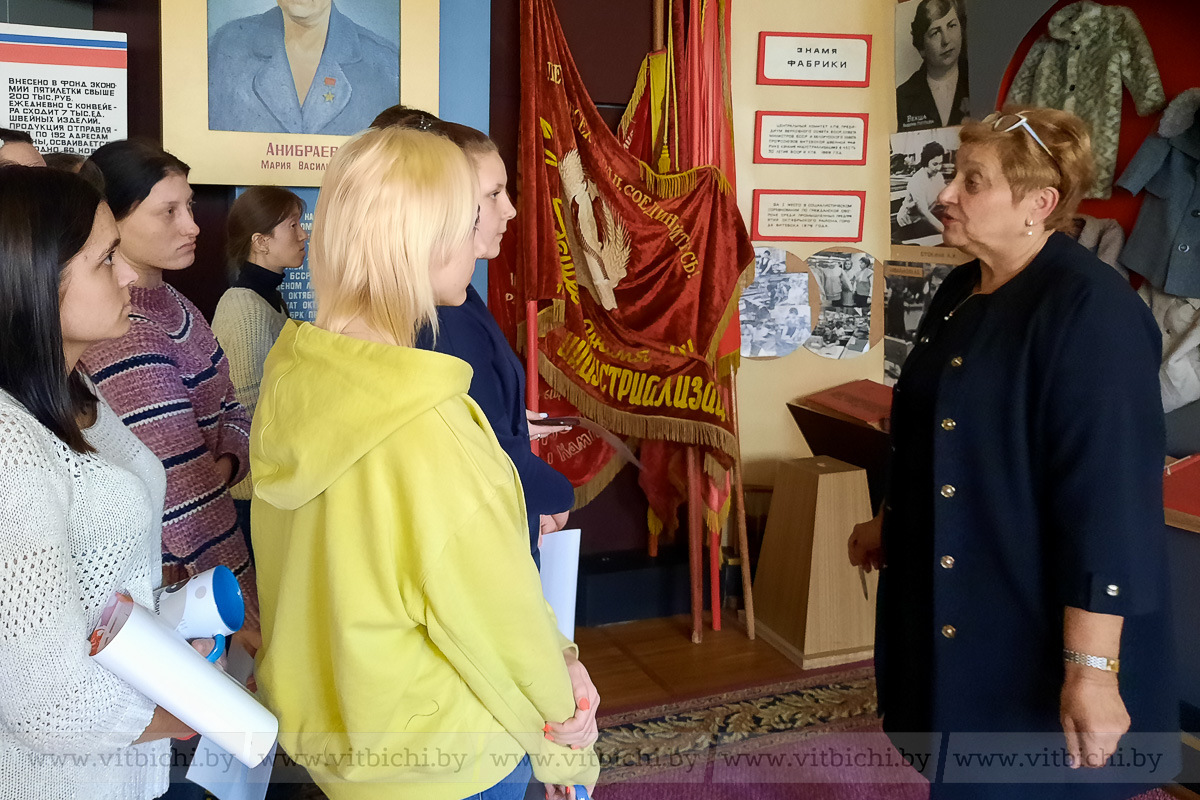 Напутствовали молодежь швея цеха № 4 Марина Антушевич, занесенная в преддверии Дня работников легкой промышленности на Доску почета Октябрьского района нашего города, и начальник экспериментального цеха Светлана Вичева, работающая на предприятии более 30 лет.