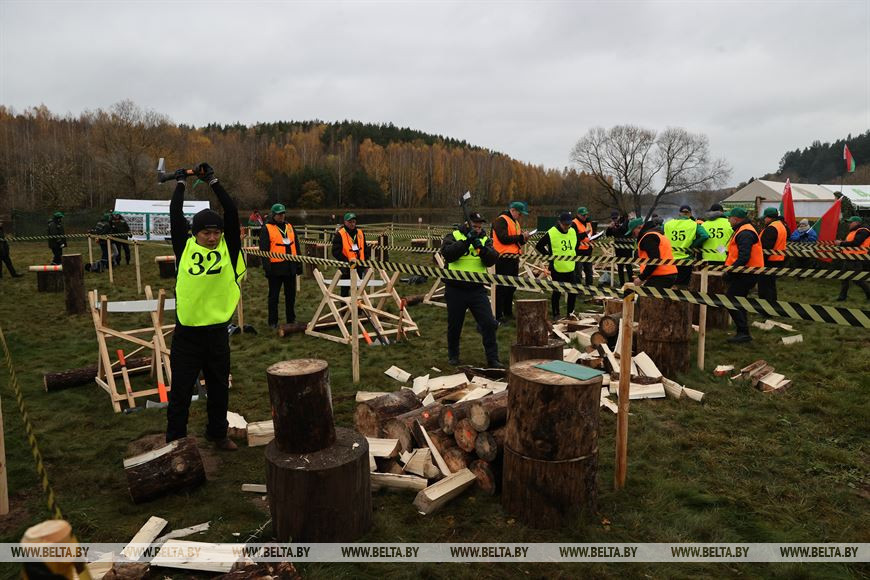 Чемпионат по колке дров среди работников СМИ проходит на территории водохранилища Вяча в Минском районе, передает корреспондент БЕЛТА.