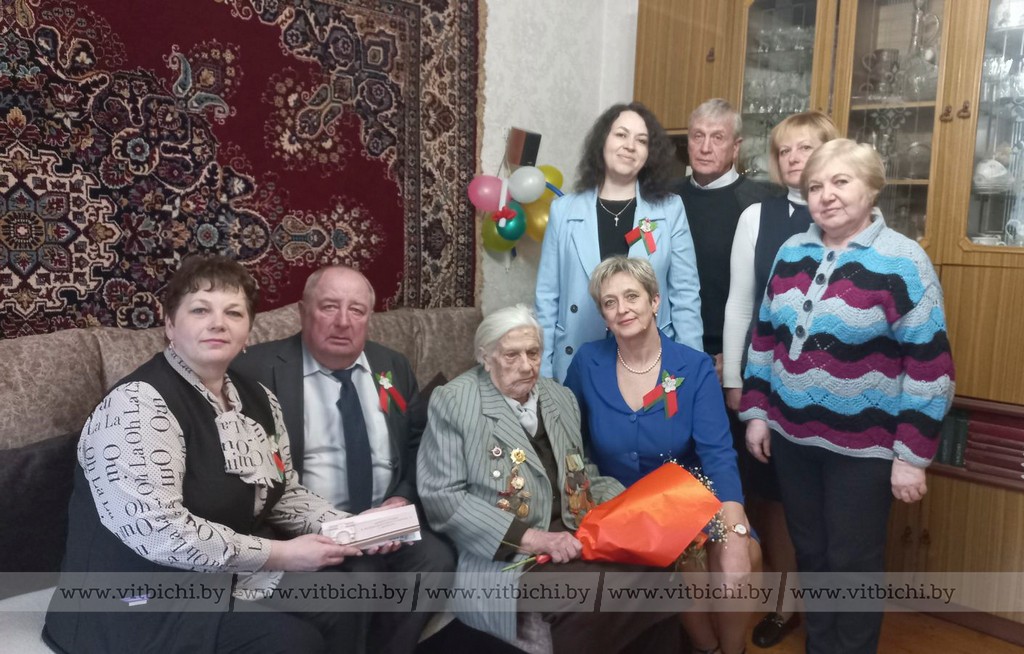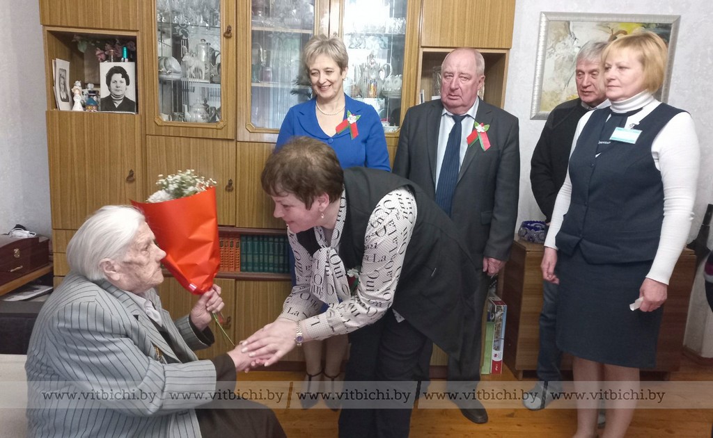 В гости к Нине Кацкель пришли заместитель главы администрации Железнодорожного района Елена Шарай и начальник управления социальной защиты Людмила Стригина, директор районного ТЦСОН Екатерина Железницкая, председатель районного совета Белорусского общественного объединения ветеранов Анатолий Иванов, начальник отделения почтовой связи № 21 Людмила Петрова, чтобы поздравить Нину Кирилловну с Днем Победы и вручить ей материальную помощь, а также цветы и подарки.