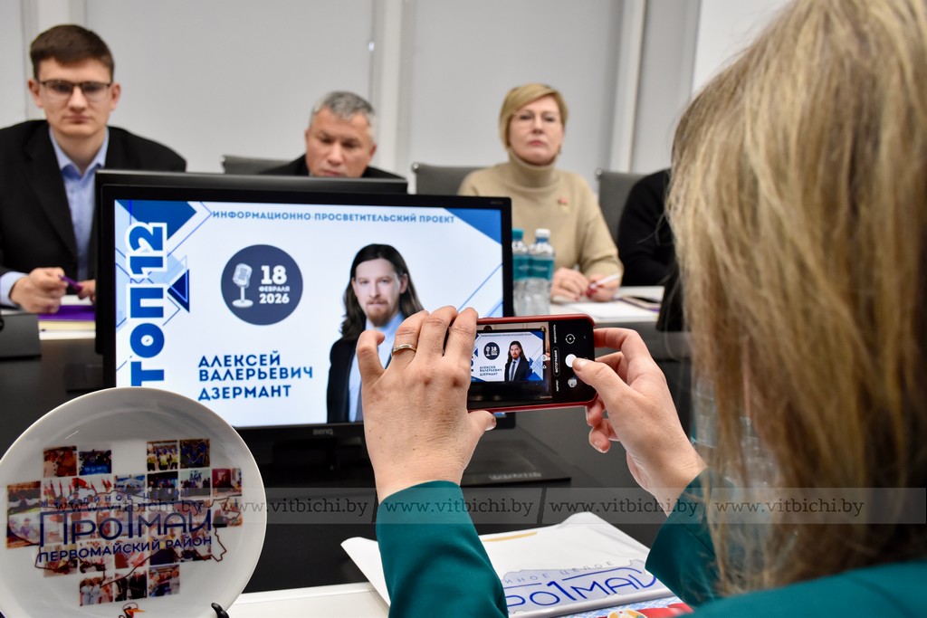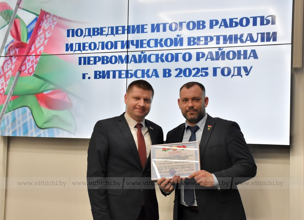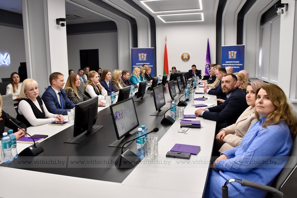 Общение с Алексеем Дзермантом продолжилось в Витебском филиале РУП «Белтелеком», где прошло совещание с участием главы администрации Первомайского района г.Витебска Евгения Семёнычева по итогам работы идеологической вертикали в прошлом году. Оно началось с видеофильма о знаковых мероприятиях, проведенных первомайцами в 2025 году, когда отмечалось 85-летие района.
