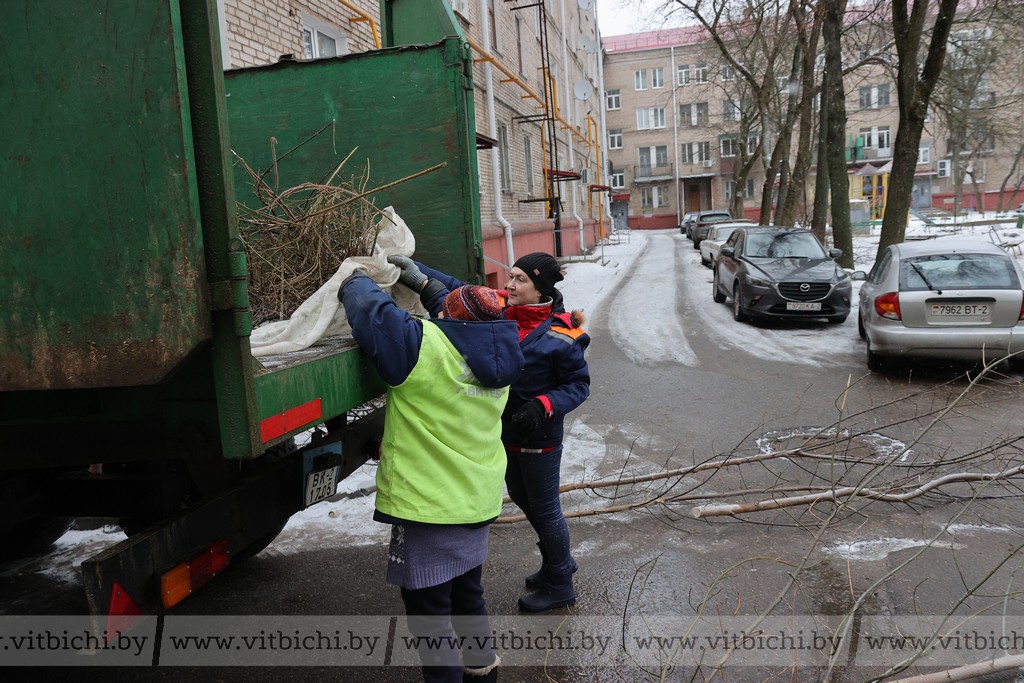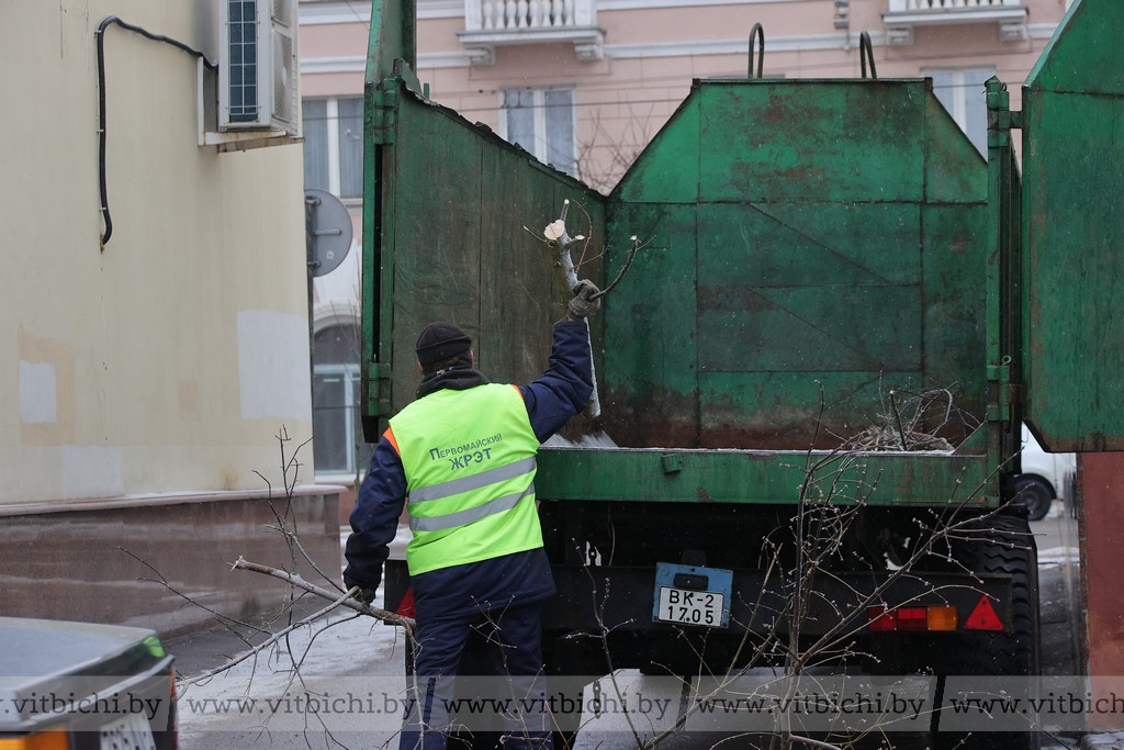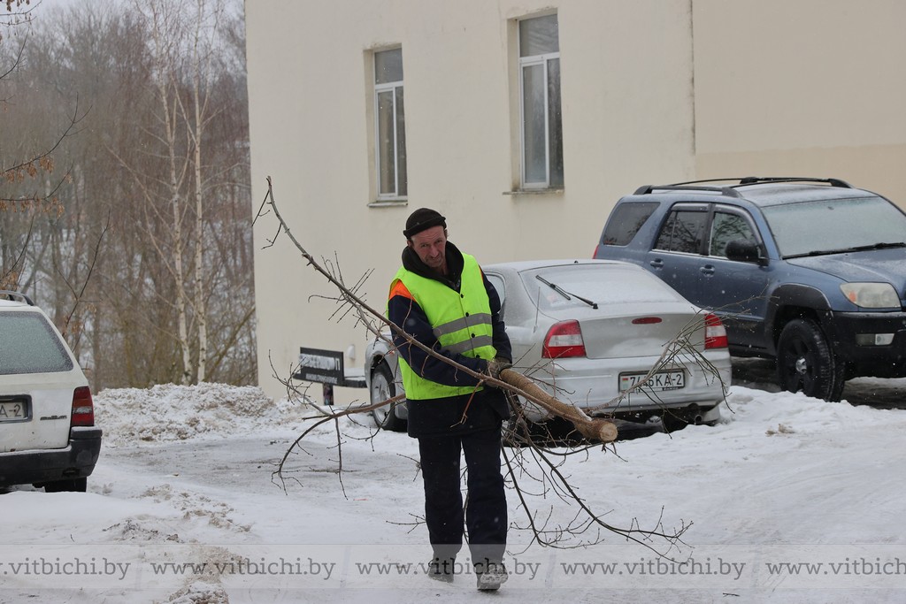 Как рассказали в ЖРЭТе города Витебска, при наличии свободной техники и рабочих ветки убирают сразу. Когда идет снег, то первоочередная задача, конечно, чистить и посыпать тротуары и дворы песко-соляной смесью, а уже после вывозить ветки.