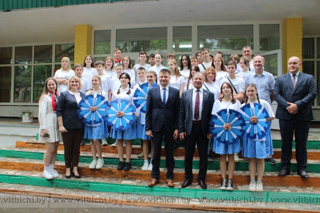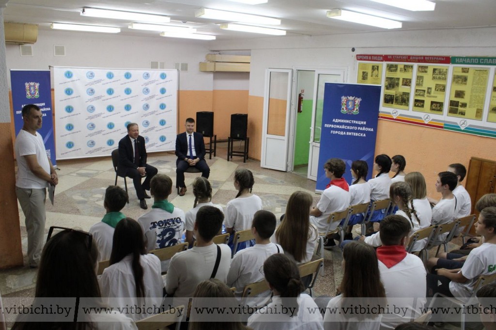 Депутат Палаты представителей Национального собрания Республики Беларусь Виктор Николайкин и глава администрации Первомайского района г. Витебска Евгений Семёнычев на диалоговой площадке «Беларусь – страна мира и созидания» в оздоровительном лагере «Чайка» ОАО «ВЗРД «Монолит» рассказали мальчикам и девочкам о своем детстве, подсказали как стать руководителем.