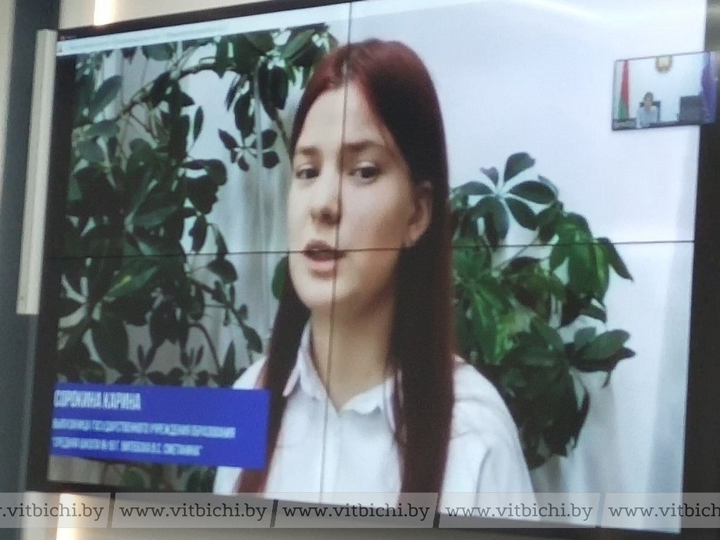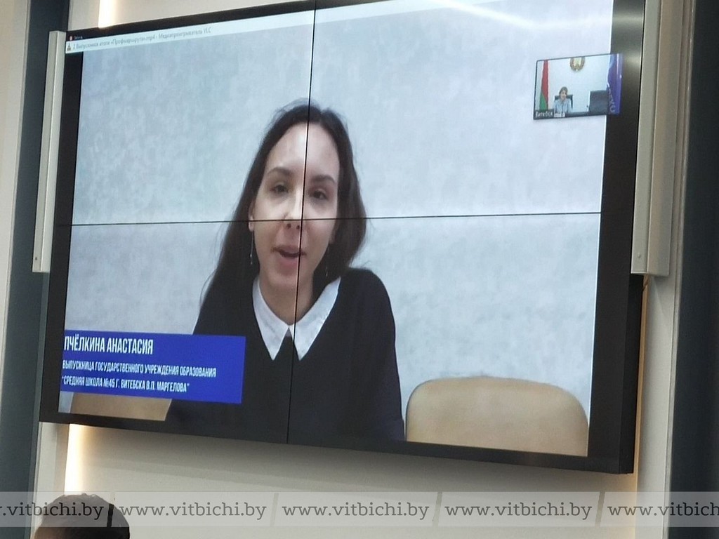 В режиме видеосвязи витебские школьники могли задать вопросы представителям учреждений образования. Учащиеся гимназии № 5 имени Людникова поинтересовались сроками проведения репетиционного централизованного экзамена и централизованного экзамена.