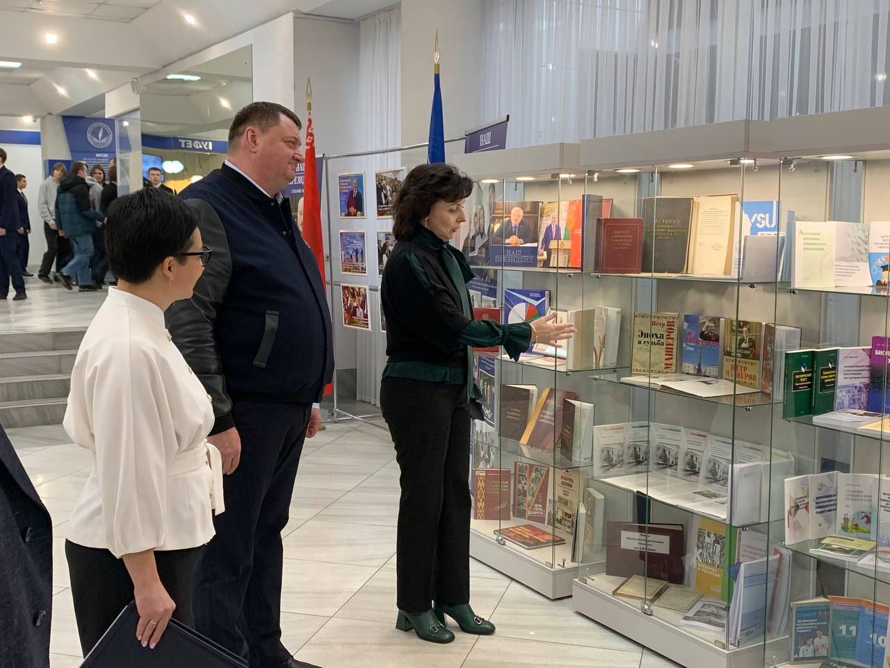 В университете им Машерова Дмитрий Довгаленок совместно с начальником управления спорта и туризма Денисом Фатеевым посетили главный корпус вуза. Ректор университета Валентина Богатырева провела экскурсию и рассказала о достижениях ВГУ в науке и в спорте.