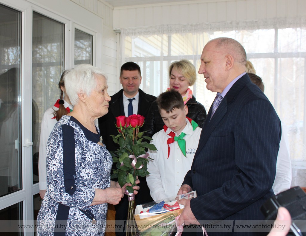 Поздравили Зинаиду Шмырёву глава администрации Первомайского района Витебска Евгений Семёнычев, председатель районной ветеранской организации Леонид Титов и пионеры СШ №43 имени М. Ф. Шмырёва. К слову, волонтерский отряд «Луч тепла» регулярно ходит к Зинаиде Минаевне убирать придворовую территорию.