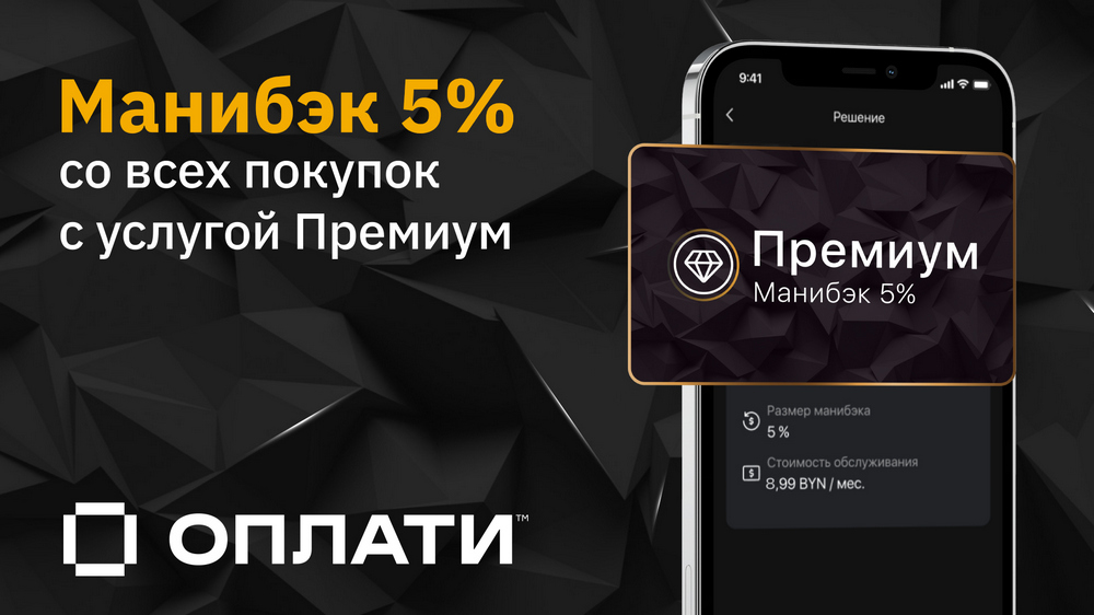 Выгодно совершать покупки на майских выходных с отечественным сервисом Оплати™: у каждого белоруса и всех гостей нашей страны есть возможность получить премиальный Манибэк 9% с любых платежей по QR. Рассказываем, как подключить услугу «Премиум»: