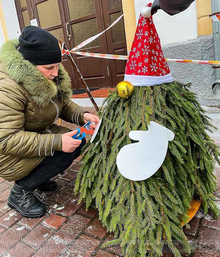 Именно сотрудники и учащиеся 15 школ и гимназий района подарили частичку волшебства горожанам. Для создания гномов использовали еловые ветки, оставшиеся от новогодних красавиц-елок, установленных в городе, в том числе и самой главной - на площади Победы.