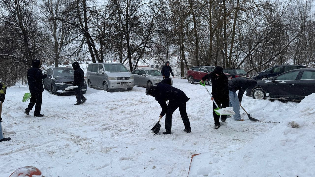Молодежь помогает в уборке снега в городе, выходит на расчистку остановочных пунктов, дворов, территорий перед административными зданиями.