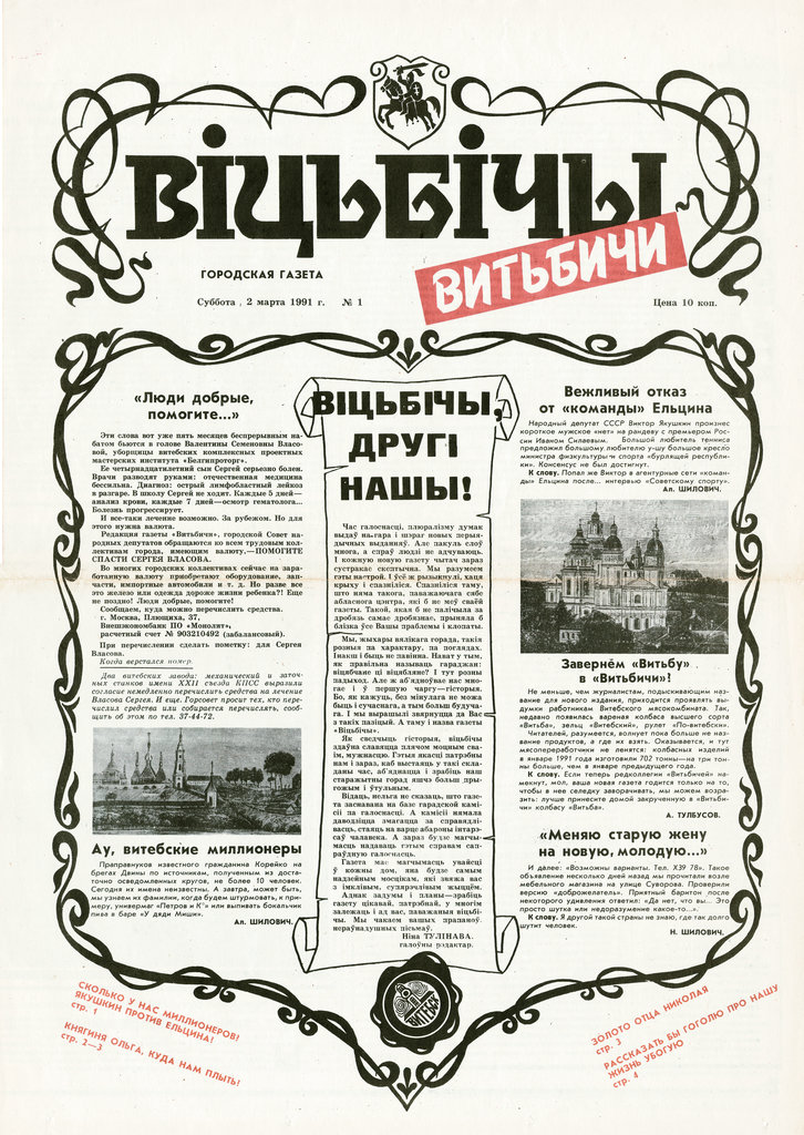 Спрос был настолько огромный, что у киоскеров города имелась заранее заготовленная табличка: «Витьбичей» нет». Когда на газету была объявлена подписка, цифры росли как на дрожжах. Лет через 5–6 после выхода первого номера газету выписывали практически в каждой городской семье — ее тираж превышал 75 тысяч экземпляров!