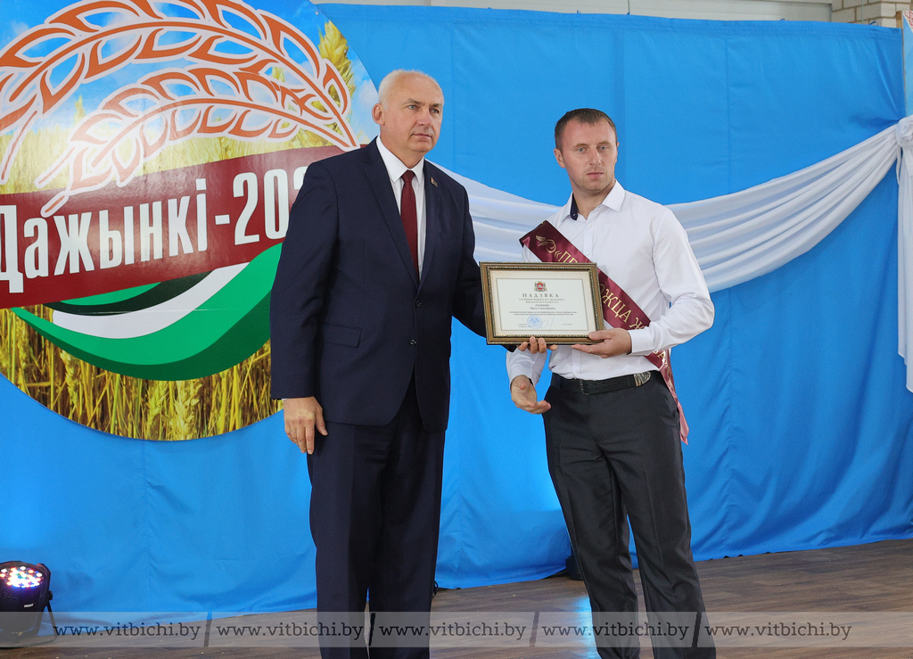 Первый заместитель председателя Витебского облисполкома вручил благодарности облисполкома героям жатвы.