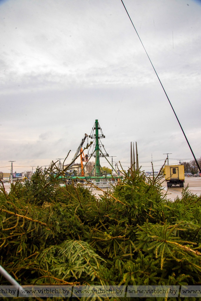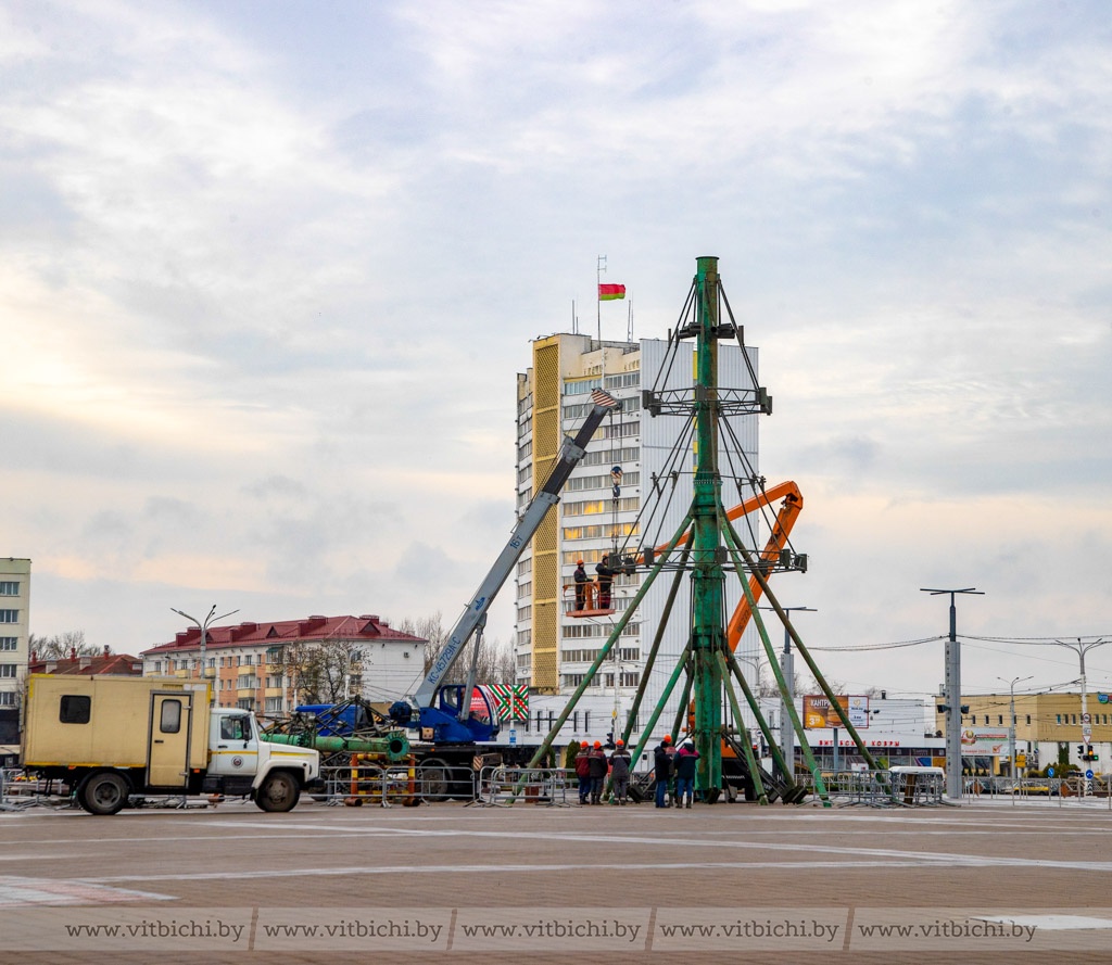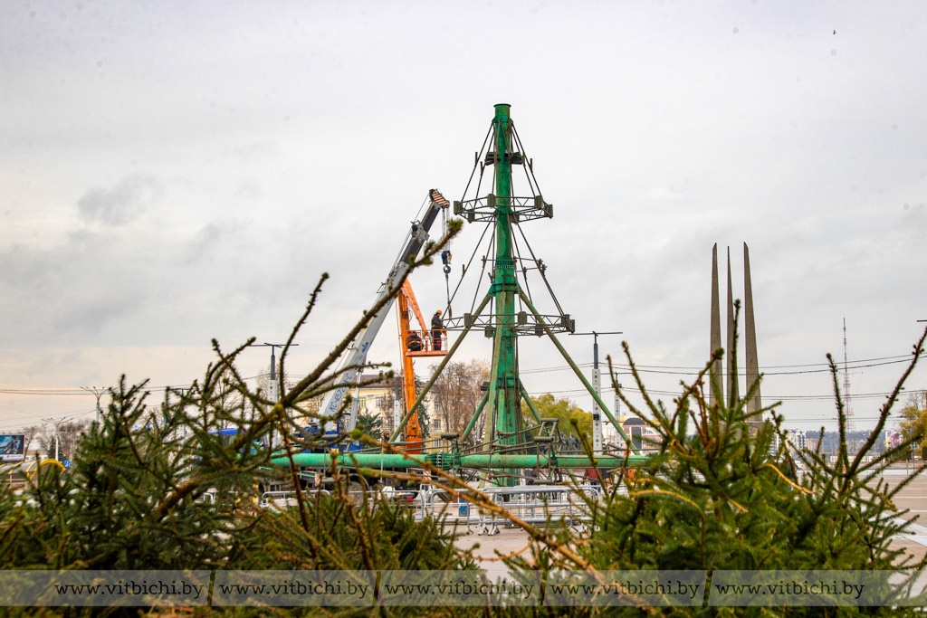 20 ноября /«Витьбичи»/ Юлия Прищепа/. На этой неделе площадь Победы в центре внимания горожан и гостей Витебска: здесь идет монтаж главной ёлки области.