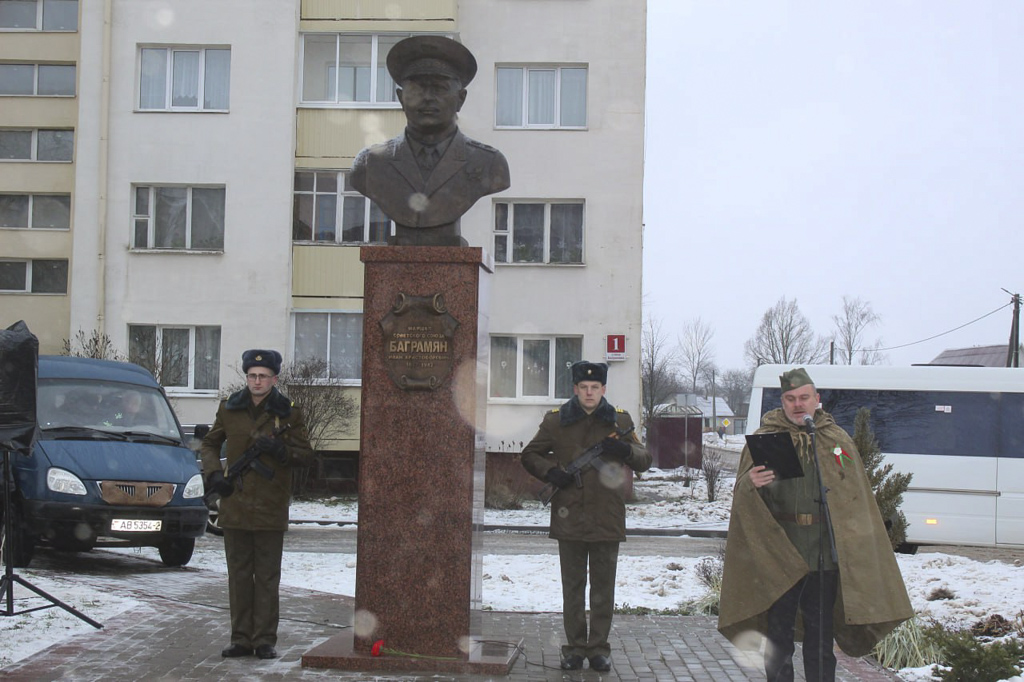 Участники празднования 80-й годовщины освобождения Городка и Городокского района возложили венки и цветы к памятнику-бюсту Маршала Советского Союза, дважды Героя Советского Союза Ивана Христофоровича Баграмяна. Память великого полководца почтили председатель Витебского областного Совета депутатов Владимир Терентьев, председатель Витебского облисполкома Александр Субботин, внук Ивана Баграмяна член правления фонда памяти полководцев Победы – Иван Баграмян, который всегда приезжает в Городок в знаменательные даты, Чрезвычайный и Полномочный посол Республики Армения в Республике Беларусь Размик Хумарян.