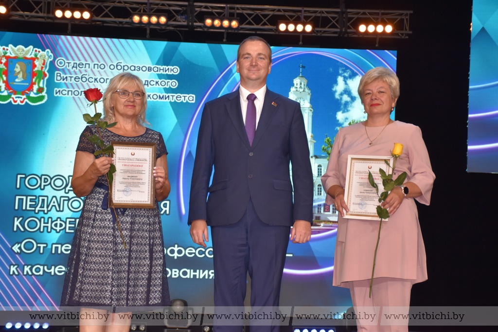 На августовской конференции учителей поблагодарили за труд достижения их талантливых учеников, вручили награды почетные гости – начальник главного управления по образованию облисполкома Дмитрий Хома, заместитель председателя горисполкома Виктор Глушин, председатель городского Совета депутатов Ольга Иванова.