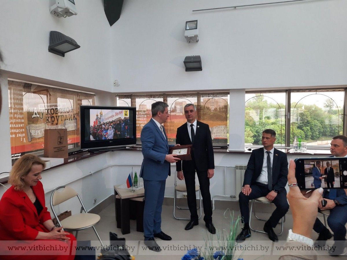 Перспективы двухстороннего взаимовыгодного сотрудничества между Витебском и Архангельском обсудили главы и представители этих городов в выставочном зале «Духовской круглик».