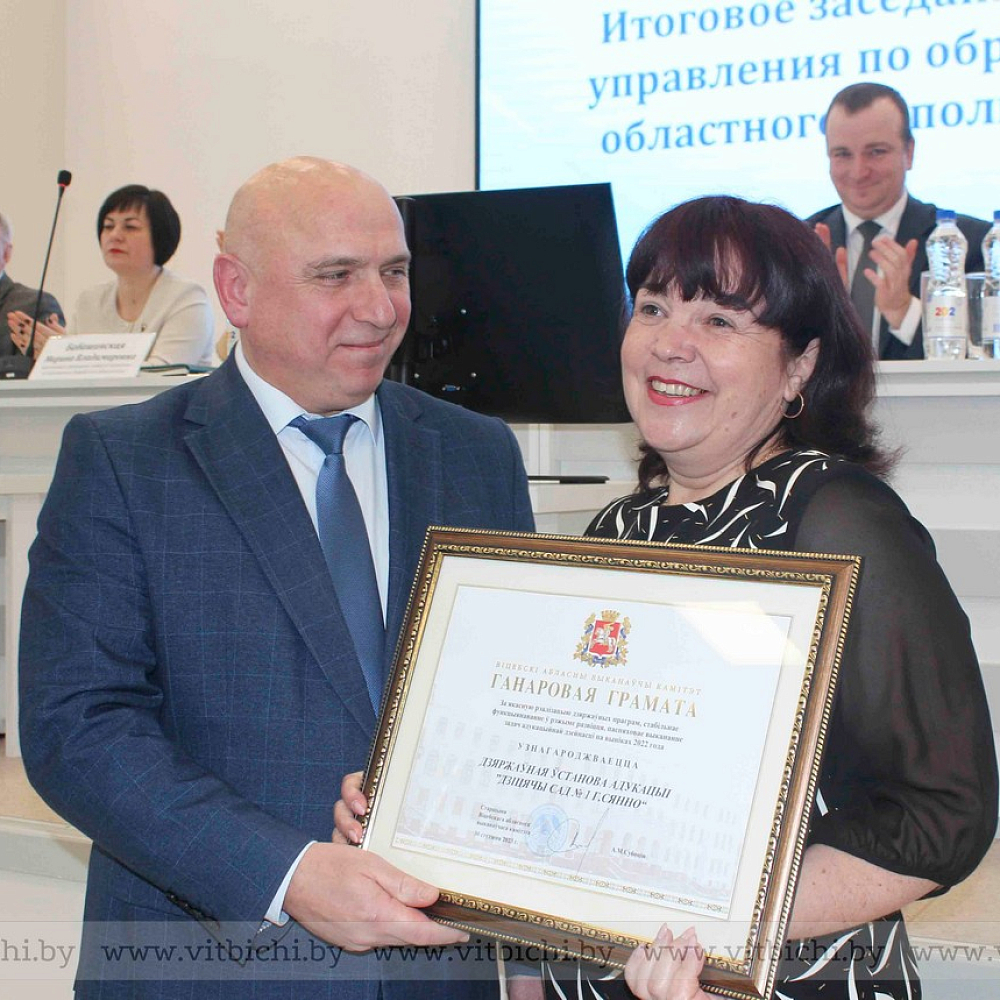 По итогам года лучшие коллективы учреждений, педагогов и руководителей образования наградили Почетными Грамотами Министерства образования Республики Беларусь, облисполкома, областного Совета депутатов и главного управления. Областное управление МЧС – лучшие учреждения по итогам республиканского конкурса «Безопасное детство», за совместную работу свои награды педагогическим коллективам вручили другие организации и объединения области.