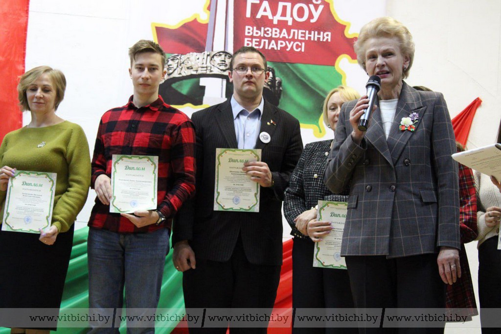 Почетные гости – председатель Витебской городской организации Белорусского общественного объединения ветеранов Лариса Оленская, председатель районной организации бывших несовершеннолетних узников фашизма Евдокия Колосова наградили учителей, воспитателей, руководителей школьных музеев, их учащихся и воспитанников, которые представили лучшие работы.