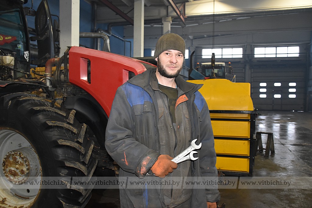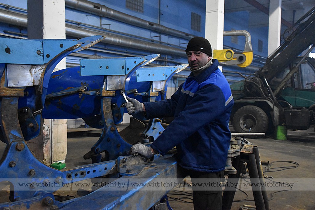 Для работников, занятых в мастерской, созданы комфортные условия. Они обеспечены спецодеждой и инструментом, в наличии есть необходимые детали. Помещение, в котором работают, отапливается с помощью котельной на дровах. На момент нашего приезда тракторист-машинист с 11-летним стажем Игорь Масалов ремонтировал десятикорпусный плуг Lemken, на котором будет задействован весной в поле. Во время других сельскохозяйственных кампаний он пересаживается в кабину кировца, а также зерноуборочного комбайна.