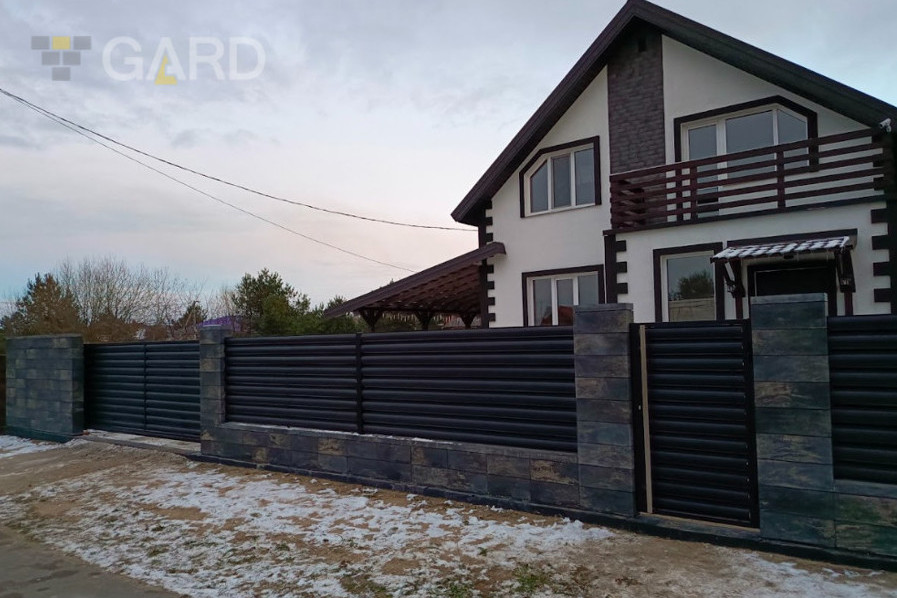 Лучший вариант — нейтральные тона: серый, графитовый, коричневый. Они остаются актуальными десятилетиями и не перегружают визуально. Универсальность особенно важна для молодых семей, которые не планируют менять забор в течение 20–30 лет.