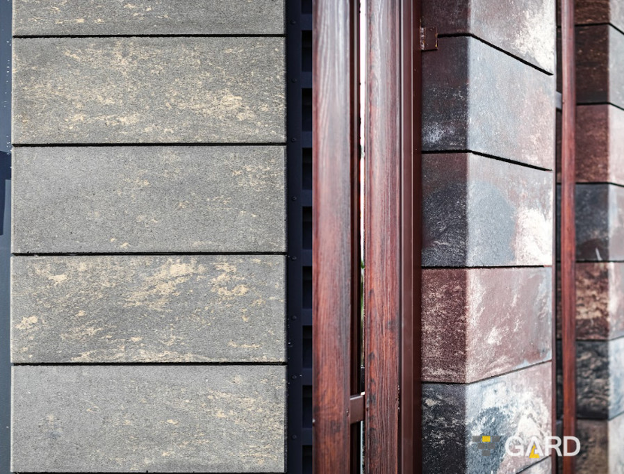 Популярны сочетания двух оттенков, имитирующих натуральный камень. В 2025 году сохраняется спрос на блоки «графит», «мрамор» и «капучино». Они хорошо сочетаются с современным минимализмом и скандинавской архитектурой.