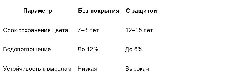 Пигменты на основе оксидов железа устойчивы к ультрафиолету и сохраняют цвет до 15 лет. Дополнительная обработка гидрофобизаторами снижает водопоглощение, что уменьшает риск высолов. Средний коэффициент выцветания для качественных блоков не превышает 5% за 10 лет.