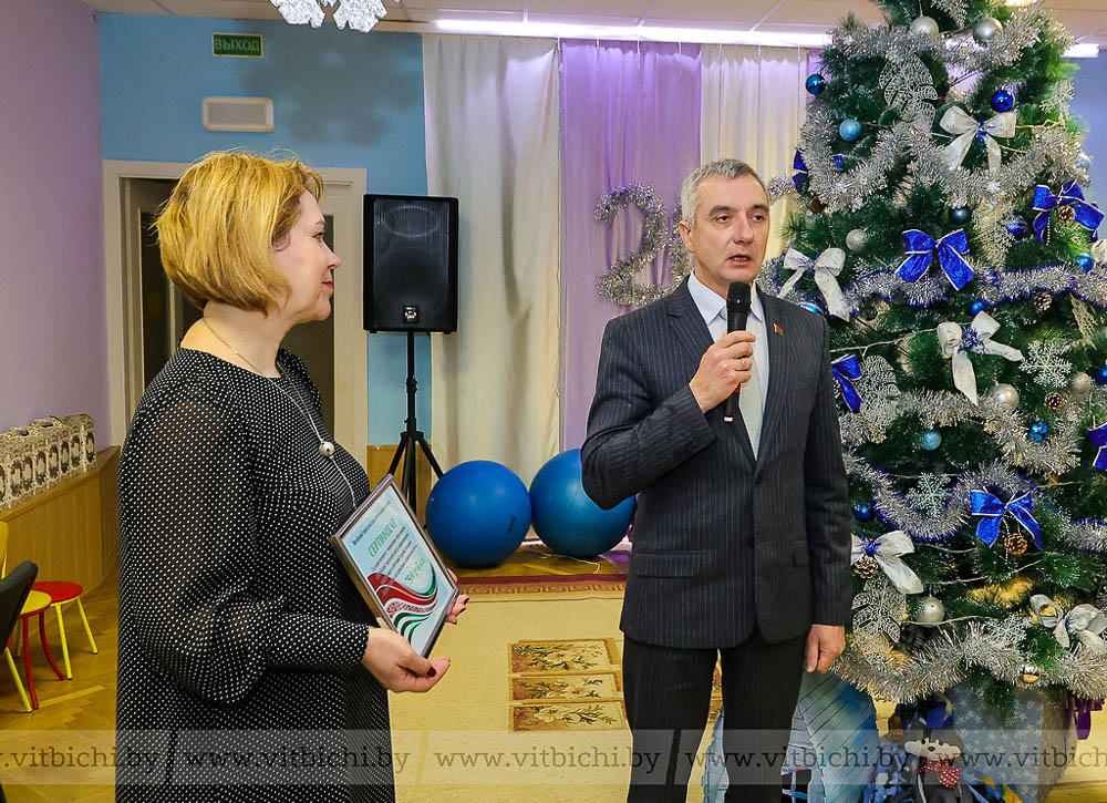 Анатолий Линевич вручил директору центра коррекционно-развивающего обучения и реабилитации Елене Дук сертификат достоинством 10 тысяч рублей для приобретения того, что необходимо для занятий с детьми. Это стало новогодним вкладом облисполкома в развитие учреждения.
