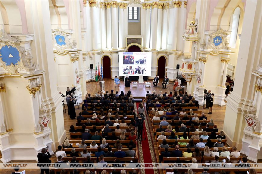 Тематический разговор о важном "Счастливая семья - сильное государство" в Полоцке собрал членов Совета Республики, представителей духовенства, министерств, ведомств, общественных организаций и объединений, семей из разных регионов Беларуси.