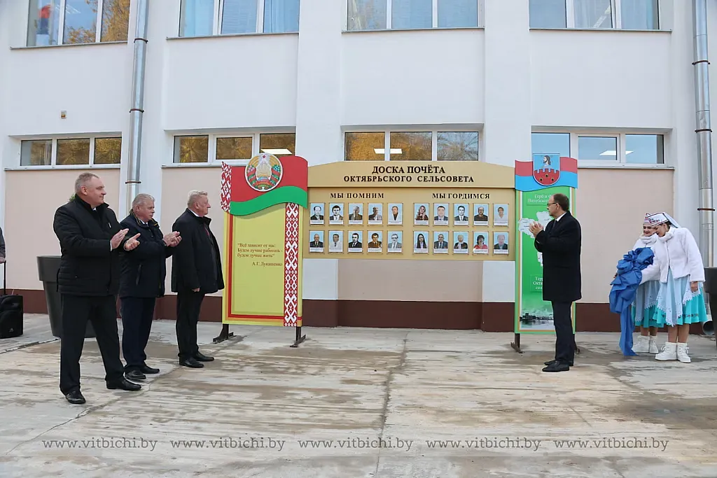 Возле Дома культуры установили доску Почёта Октябрьского сельсовета «Человек славен трудом». Скоро в агрогородке появится скейт-площадка.