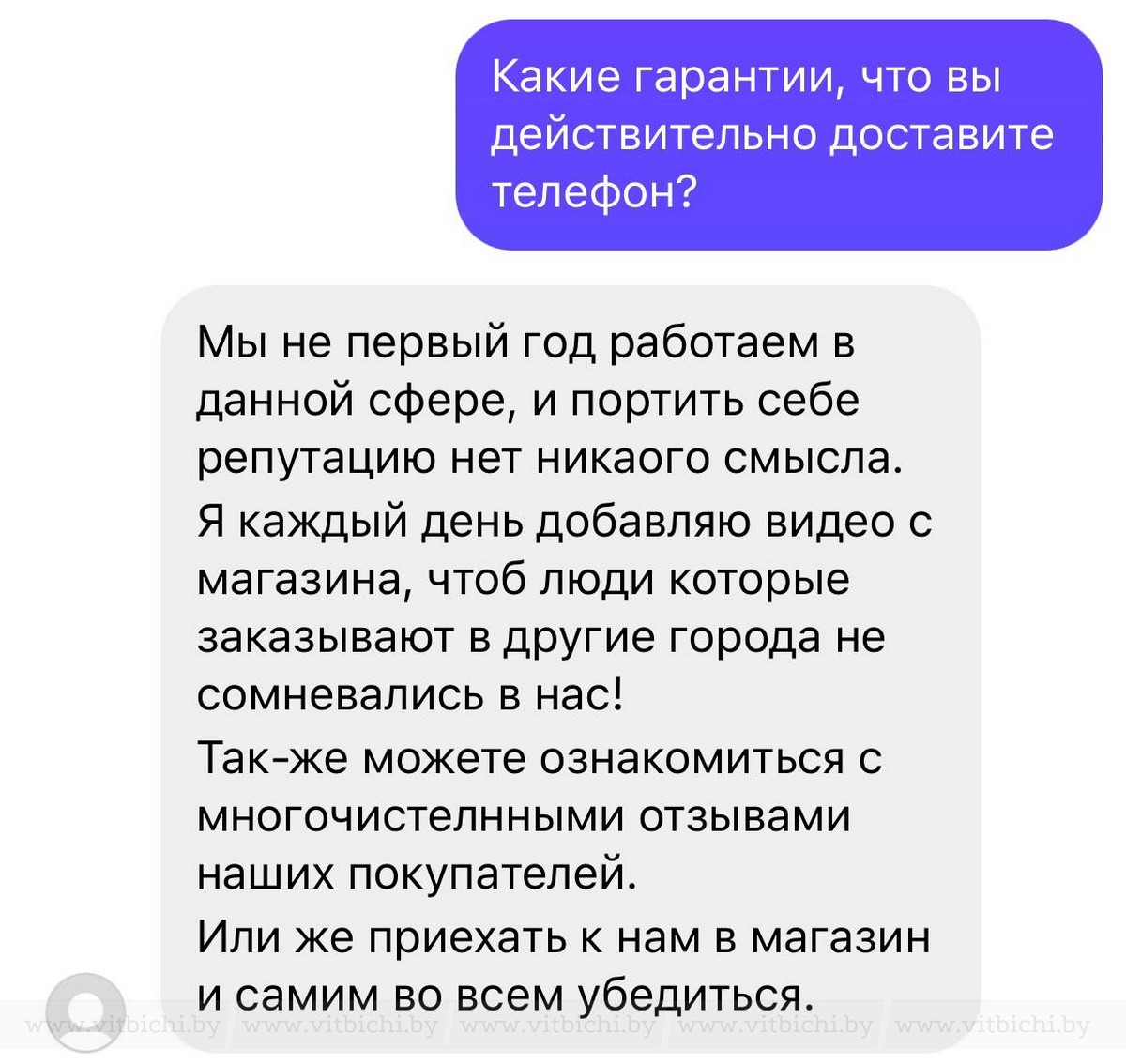 Сделка является опасной, если продавец требует перечислить предоплату за товар с использованием анонимных платежных систем или с помощью перевода на карту частного лица. Для получения телефона мне и сказали, что нужно пополнить счет одного из банков. Это сообщение и поставило точку в моих догадках. Ведь даже зарегистрированные компании и индивидуальные предприниматели не работают через перевод на карту, а используют в оплате расчетный счет, который оформляют в банке.