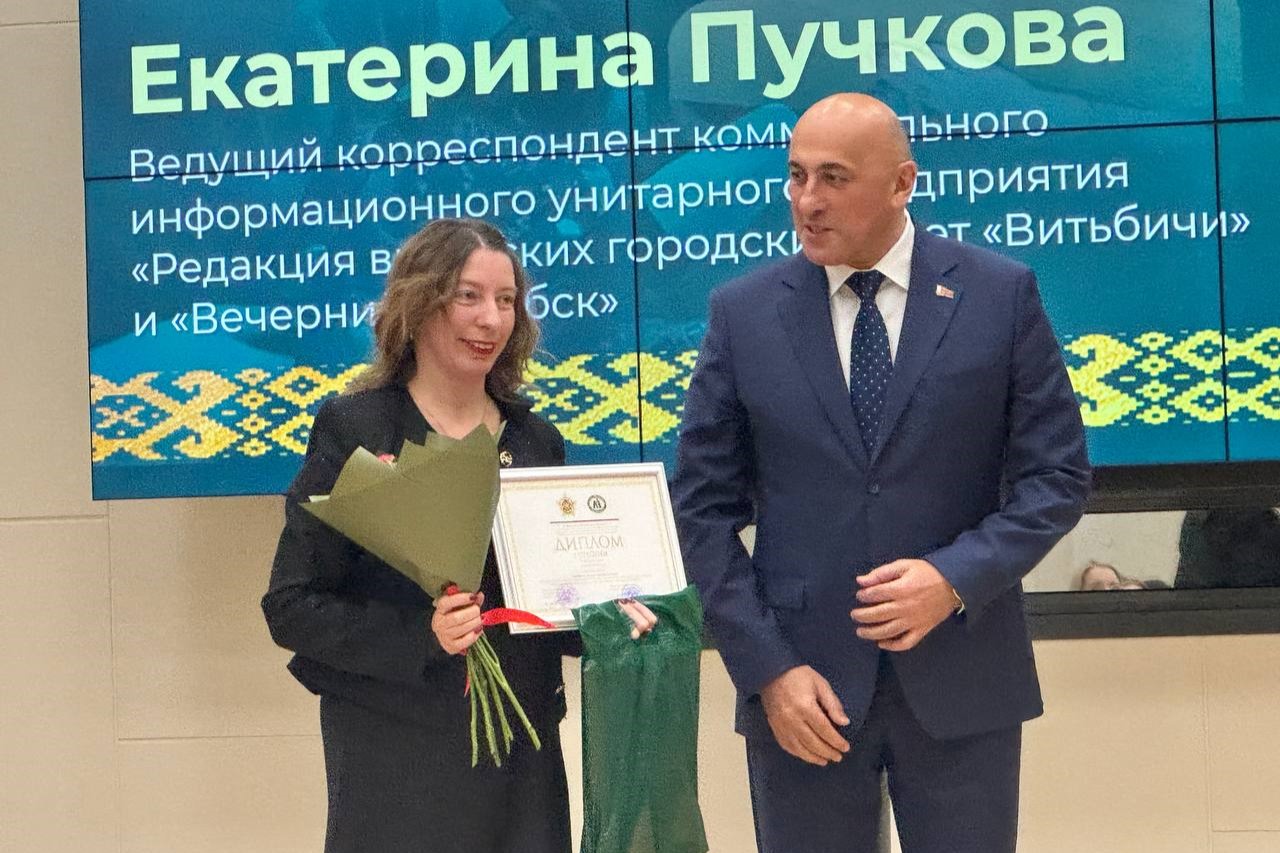 Победителем конкурса в номинации «Авторский взгляд» среди представителей печатных СМИ стала корреспондент газеты «Витьбичи» Екатерина Пучкова. Марат Марков вручил ей диплом первой степени.