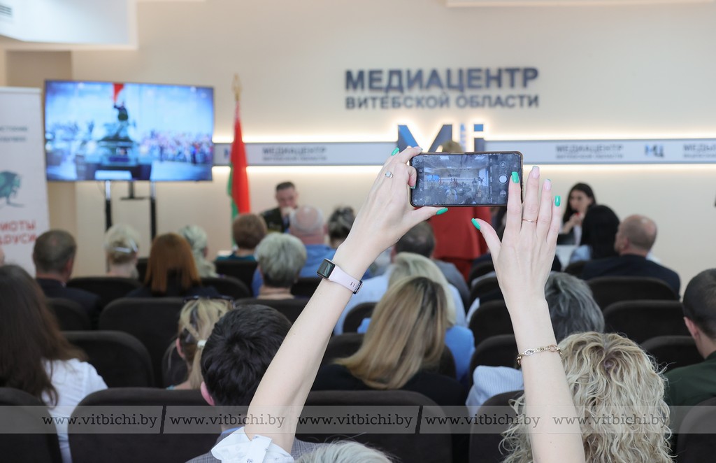 С идеологическим, общественным активом и журналистами Витебщины спикеры обсудили методы воздействия недружественной Беларуси пропаганды, верификацию источников информации, приемы противодействия в тотальной информационной войне, развязанной Западом против нашей страны.