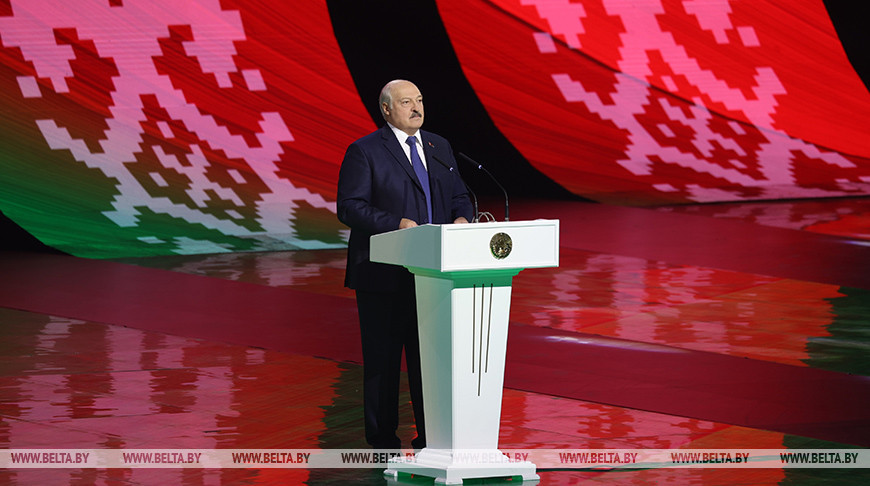 "Мы аб'ядналіся ў адной краіне, у адной рэспубліцы. Ад сіняй стужкі Прыпяці да званоў полацкай Сафіі. Ад Камянецкай вежы і нёманскіх хваль да велічных Дняпра і Сожа. Паходню беларускай дзяржаўнасці запалілі ў старажытным Полацкім княстве і праз стагоддзі выпрабаванняў дзякуючы сіле духу нашых продкаў адрадзілі ў Мінску. І пад светлым знакам нашага адзінства мы ўпэўнена крочым у будучыню. Так будзе заўжды! Гэта НАША гісторыя!" - заявіў Прэзiдэнт.