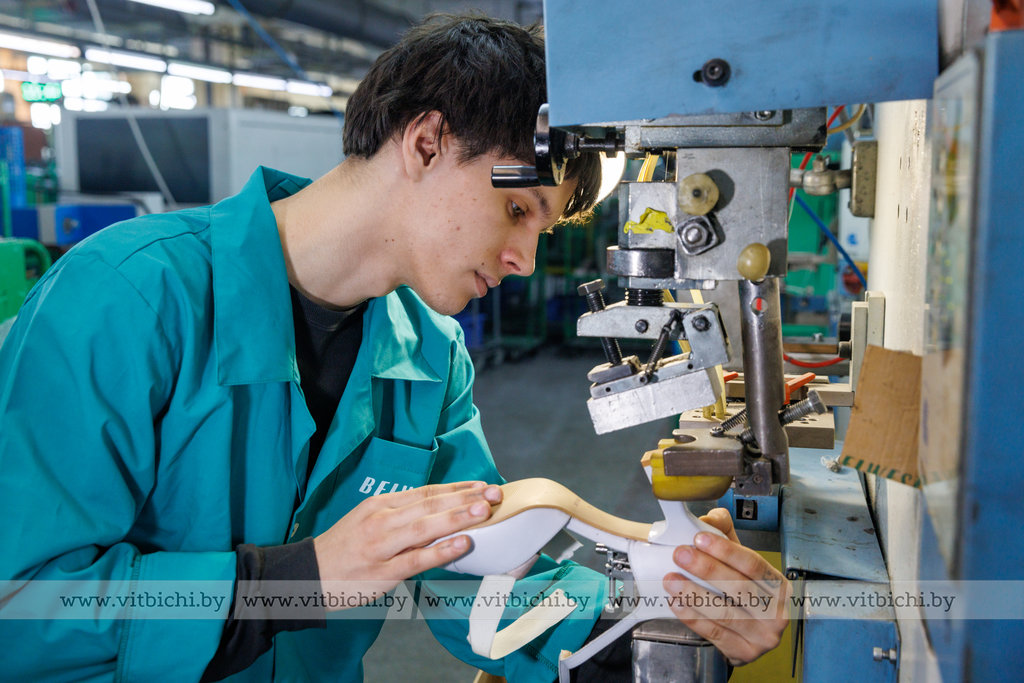 Осваивать профессию прессовщика Евгению помогает Андрей Шелухо, сборщик обуви шестого разряда. Вот уже пара недель как приступили к обучению. Ученика привел старший мастер и попросил Андрея его обучить, ведь парень очень этого хочет.
