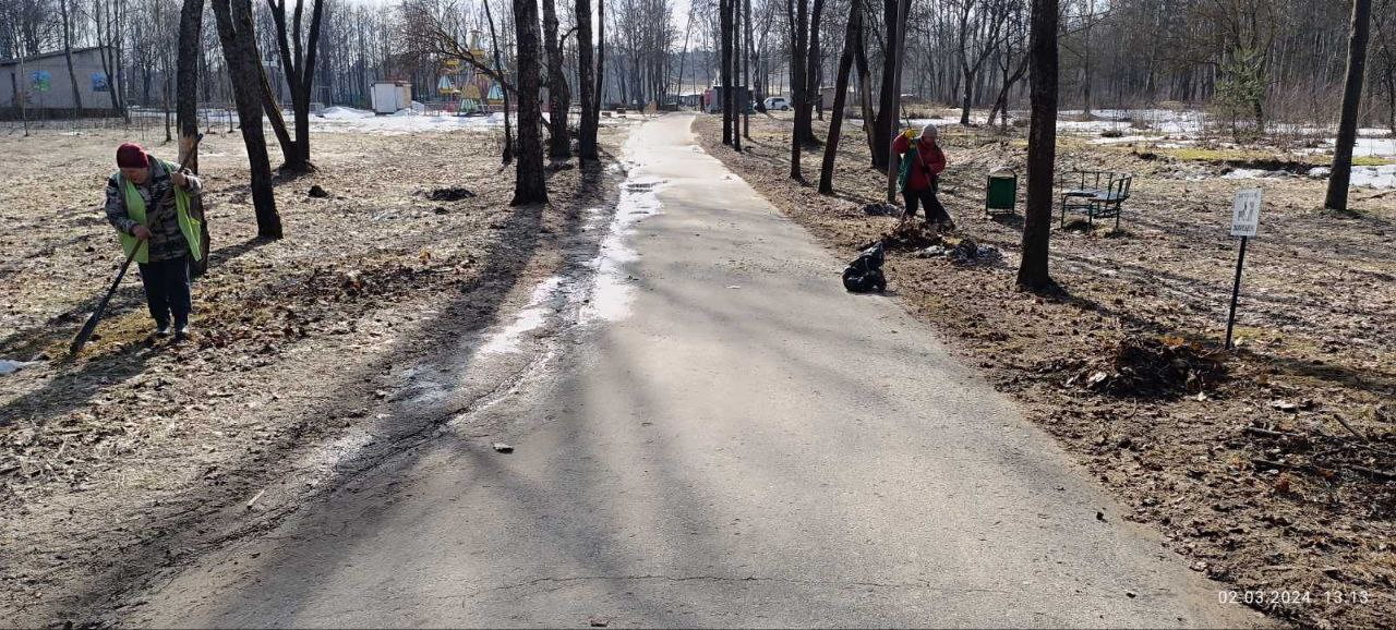 Парк Советской Армии тоже преображается после зимы. Здесь трудятся рабочие Зеленстроя.