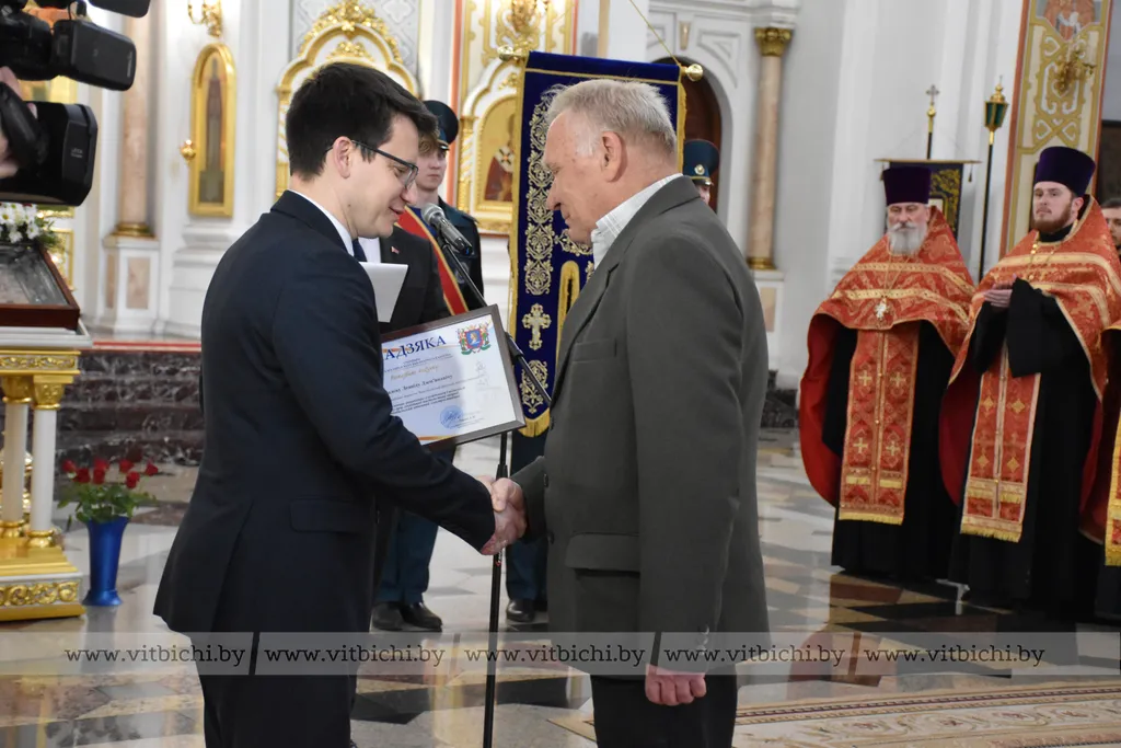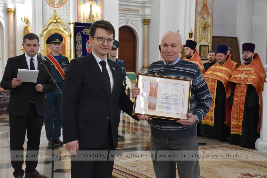 Виктор Глушин вручил Почетную грамоту Витебского горисполкома участнику ликвидации аварии на ЧАЭС Александру Нестерову. Благодарности председателя горисполкома получили бывшие ликвидаторы Леонид Соболев и Анатолий Фелитар.