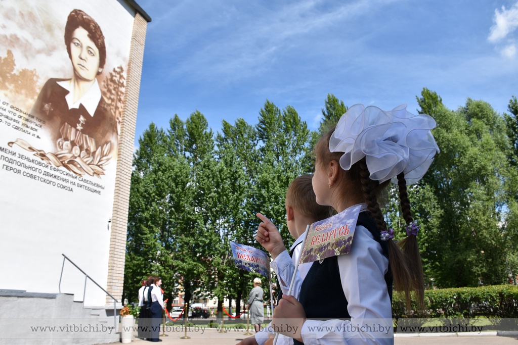 Семь лет назад в школе открылась музейная экспозиция «Блокадному Ленинграду посвящается...», пять лет назад учреждение образования первое в Витебске и второе в области получило статус «Школа мира», полтора года назад школе было присвоено имя Ефросиньи Зеньковой, а теперь на фасаде здания в торжественной обстановке открылся мурал участнице подпольного движения на Витебщине. Появился он по инициативе руководства управления Государственного комитета судебных экспертиз по Витебской области.