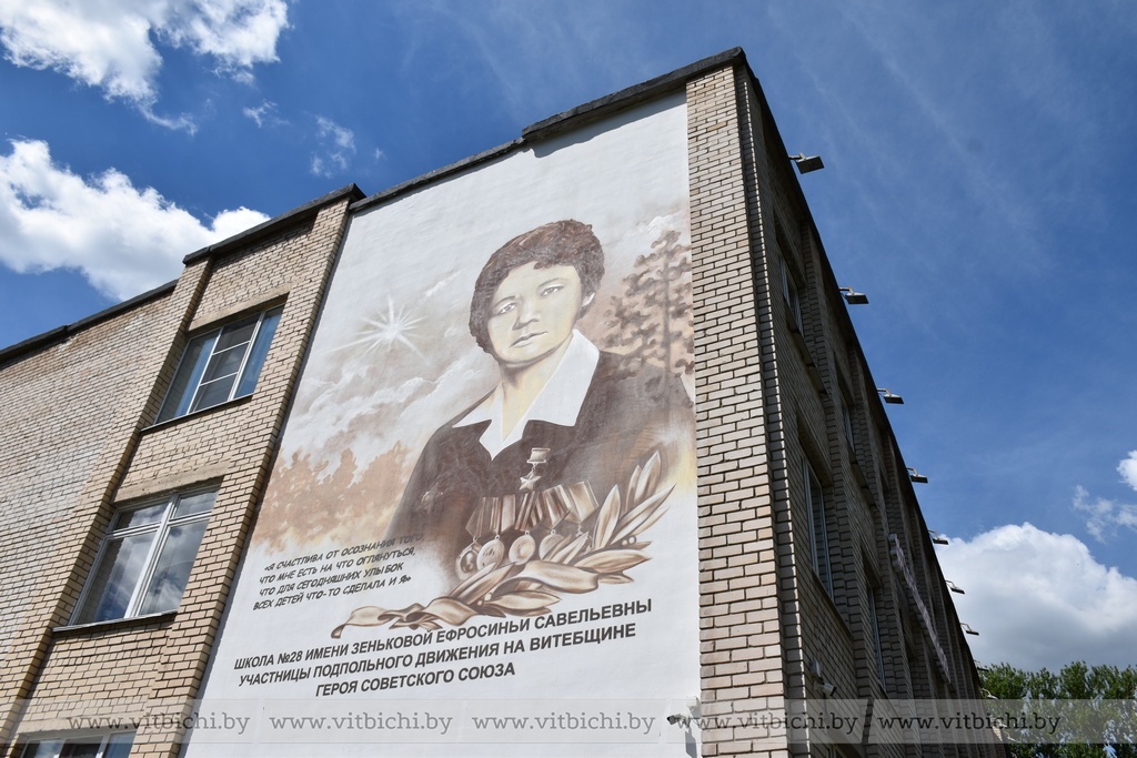 На фасаде средней школы № 28 имени Е. С. Зеньковой появился мурал в честь Героя Советского Союза, руководителя комсомольско-молодежной организации «Юные мстители», Почетного гражданина города Витебска Ефросиньи Зеньковой.