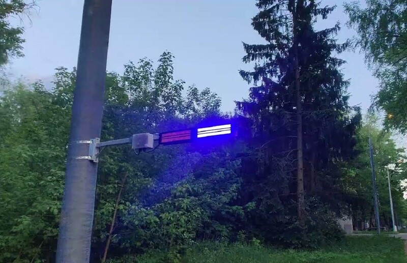 Система оснащена мигающими синими огнями, которые привлекают внимание водителей, заставляя их снизить скорость и повысить бдительность, подобно тому, как это делают водители при виде служебного автомобиля сотрудников ГАИ.