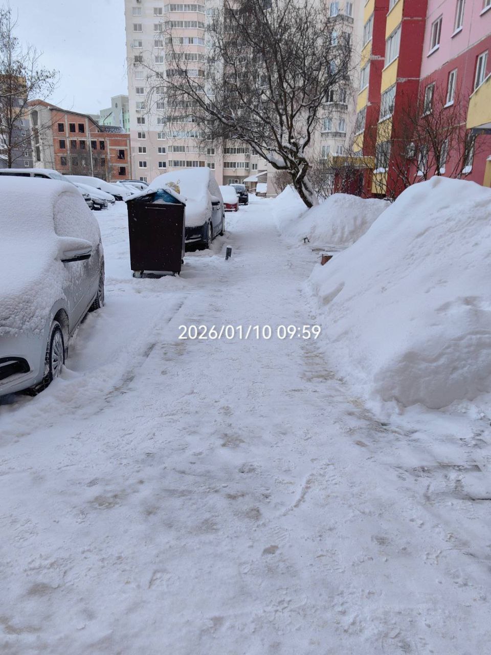 10 января / «Витьбичи» / Вера Мурашкина /. Вот так, с занесённых снегом входов в подъезды, начинается в дни циклона рабочее утро у дворника ЖЭУ-21 Татьяны Гудковой.