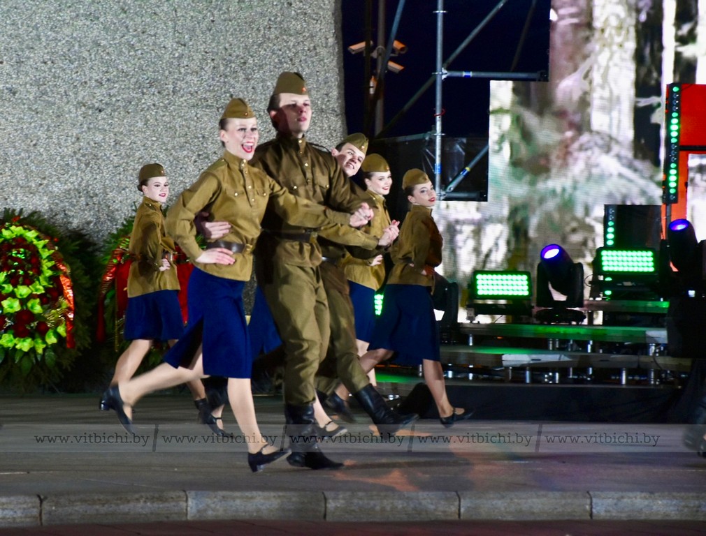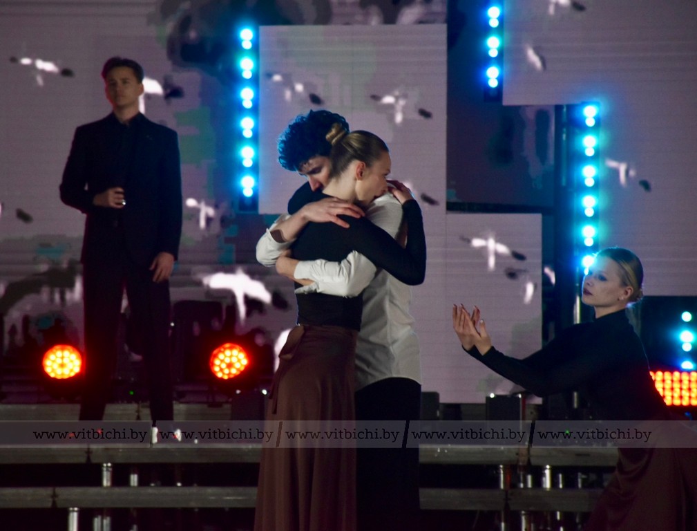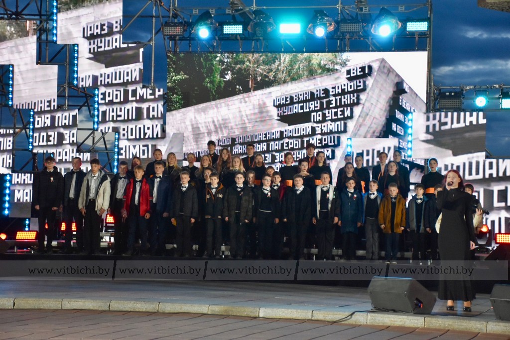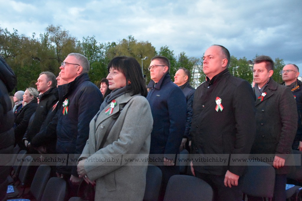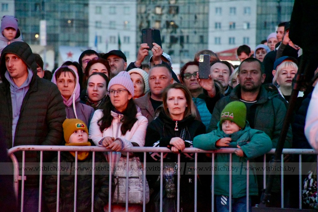 Сотни витебчан и гостей города пришли увидеть главный концерт праздника. В нем принимают участие порядка 700 певцов, танцоров. Впечатляют оформление сцены под открытым небом: гигантские мультимедийные экраны, сценическая пиротехника, световые эффекты.