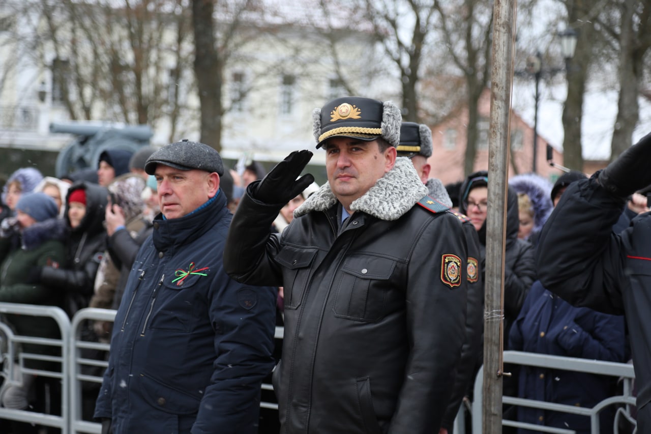 Торжественный ритуал принятия присяги собрал многочисленных гостей, среди которых был и начальник областного УВД генерал-майор милиции Андрей Любимов. Он отметил: "Защищать родную землю, служить ей верой и правдой — великая честь для каждого мужчины. Теперь за новобранцами — сильная и процветающая Беларусь, пожелал стать достойными защитниками своей Родины, быть верными Присяге и не забывать о родной семье, любимой девушке, друзьях, которые с нетерпением ждут их дома. Соблюдать устав и с гордостью носить форму!".