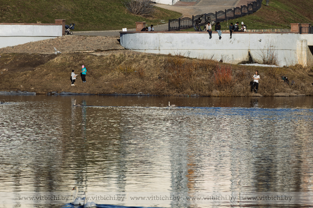 8 марта / «Витьбичи» /. Западная Двина в районе Кировского моста в последнее время привлекает внимание горожан и гостей города — реку облюбовали лебеди. Изящные птицы стали настоящей достопримечательностью, и теперь каждый, кто проходит мимо, не может удержаться от желания полюбоваться прекрасными птицами. Сюда приходят насладиться красотой природы и отдохнуть от городской суеты.