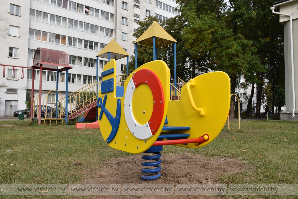 В этом году в Витебске на придомовых территориях установили 64 единицы детского игрового и спортивного оборудования, а также 297 удобных скамеек со спинками и 300 урн.