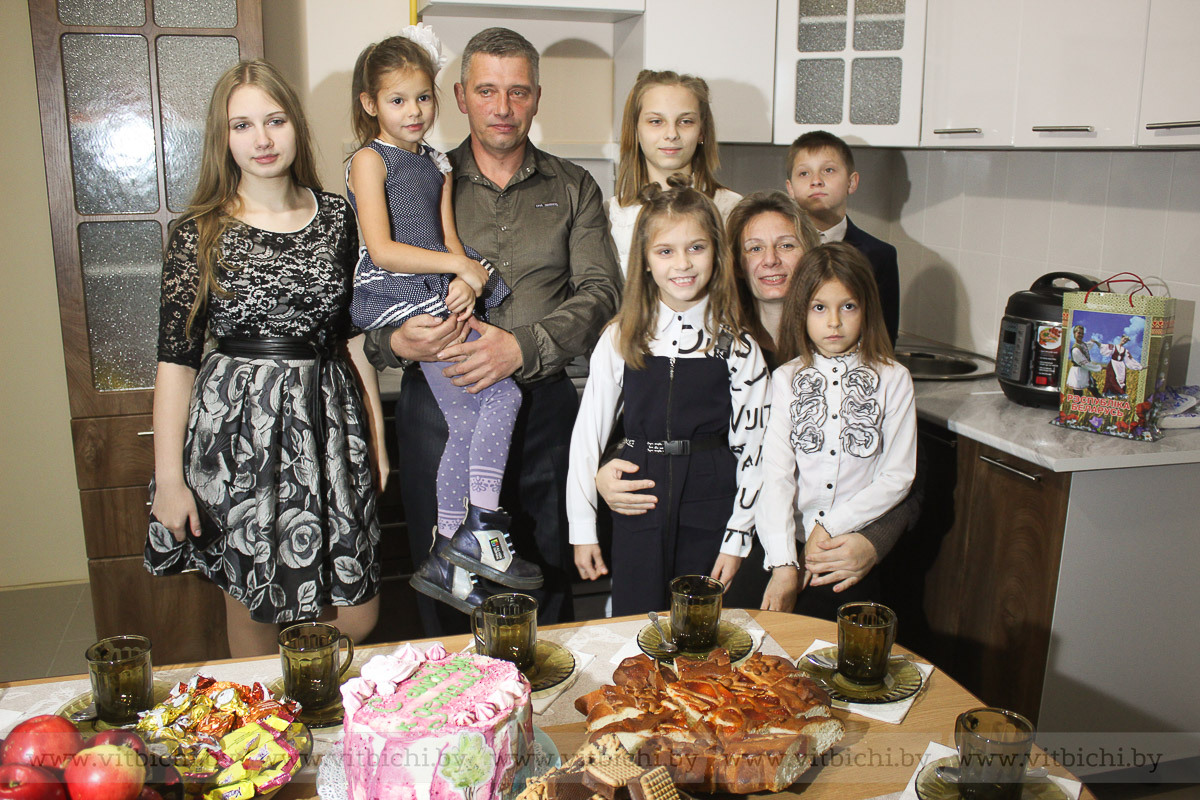 В новом доме есть все нужное для многодетной семьи – современная бытовая техника, мебель, помещения для занятий и отдыха. В комплектовании коттеджа активное участие приняли предприятия и организации Витебска и Городка – это большой совместный труд. Необходимые семье вещи презентовали Витебское областное отделение Белорусского детского фонда, Городокское отделение Белагропромбанка, предприятие «Ланатекс», Городокский районный отдел по чрезвычайным ситуациям, учреждения образования, профсоюзная первичная организация Центра по обеспечению деятельности бюджетных организаций.