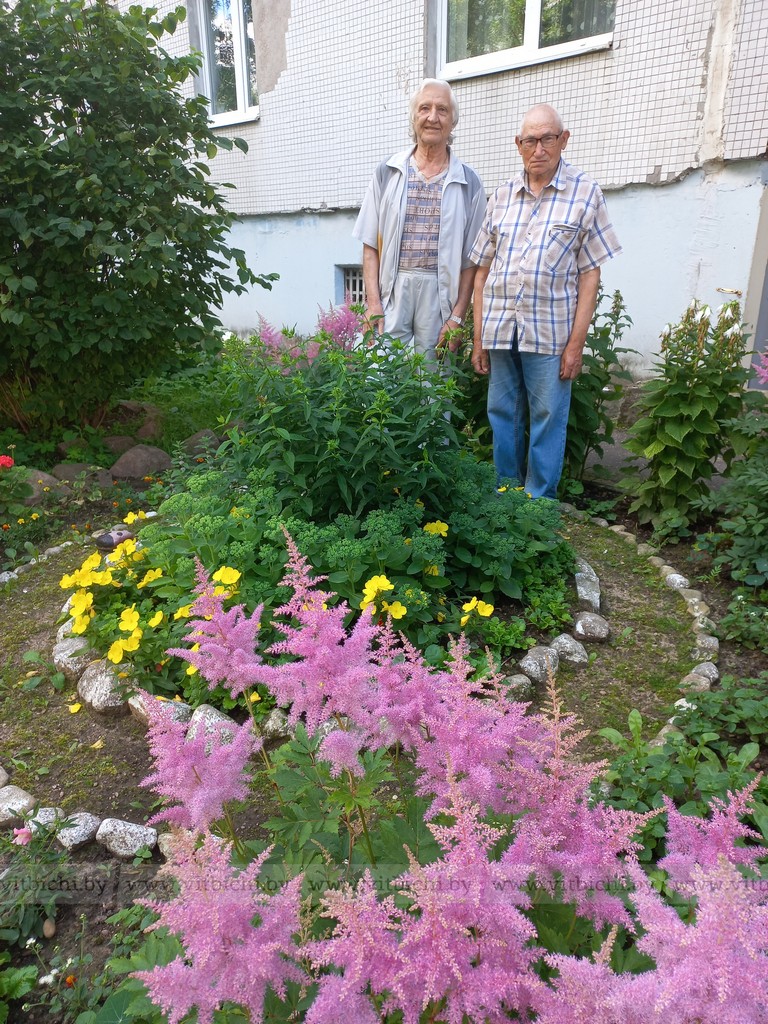 Анатолий Фелитар по профессии стоматолог, во дворе отвечает за техническую составляющую благоустройства: ремонтирует скамейки, качели, добывает кирпичи, камни для обустройства клумб, краски и многое другое. В этом у Анатолия Алексеевича помощников немало. А вот в том, что у каждого подъезда клумба, да еще с таким разноцветьем, заслуга Михаила Бокиша. Он всю жизнь проработал на витебской обувной фабрике «Красный Октябрь», был душой коллектива, занимался общественно-массовой работой, выпускал радиогазету, поэтому и для дворового коллектива человек незаменимый. Если что – «к Потаповичу»! Невзирая на возраст, он и дачу не бросает – это источник семян, клубней и рассады цветов для высадки во дворе. Михаил Бокиш, кстати, может претендовать на участие даже в нескольких номинациях конкурса «Там, где мы живем»: в образцовом порядке он содержит и свой шестой подъезд, на этажах которого устроил целую оранжерею.