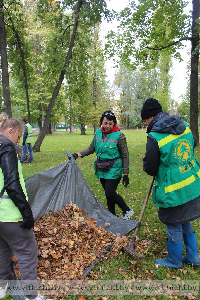 Подметают дорожки, сгребать листву, потом грузить ее, чтобы вывезти ее в питомник. Все это обязанности Марины и ее коллег. Часть листвы пойдет на утепление молодых саженцев на предприятии, из части делают перегной, который потом привезут в качестве удобрения на цветники.