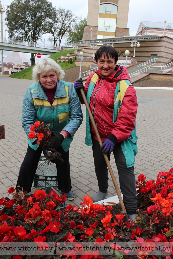 Выборкой цветов в эти дни сотрудники Витебского Зеленстроя занимаются по всему городу. Также убирают вертикальное озеленение.