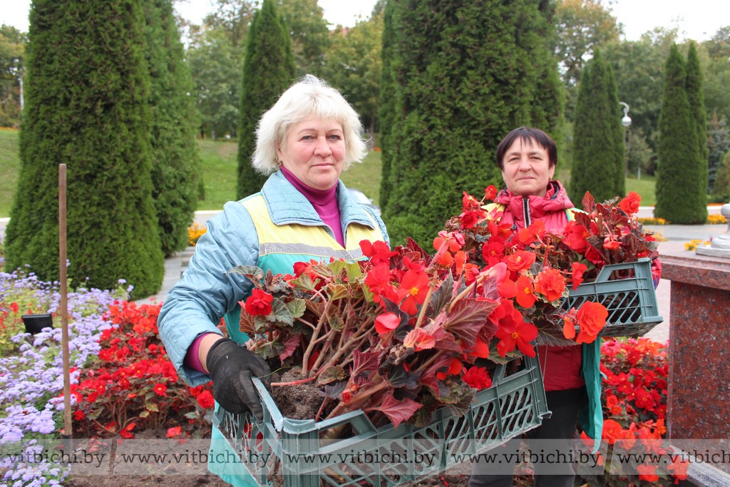 По словам старшего мастера первого участка Витебского Зеленстроя Натальи Дядечкиной, как только отметка на градуснике стала опускаться вниз, начали желтеть листья у бегонии. Чтобы не дать растениям пропасть, их надо скорее «спрятать в домик» до весны – отвезти на хранение в теплицу.