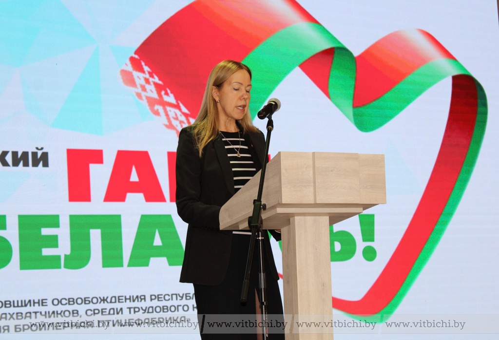 – Белорусский народ заплатил в годы Великой Отечественной войны ценой жизни 3,5 миллиона наших дедов и прадедов, защищавших родную землю. Этот горький опыт научил нас беречь мир и ценить национальное единство. Мы дорожим славными страницами истории своей родины и храним в сердцах гордость за своих победителей, – отметила, приветствуя участников и гостей фестиваля, генеральный директор Витебской бройлерной птицефабрики Анна Норкус. – Мы работаем на благо родной земли, укрепляем ее экономический потенциал и создаем своими руками продовольственную безопасность для белорусского народа, но не только в этом заключается наш патриотизм. Меня переполняет гордость за родной коллектив, который в знаковый для страны год не остался в стороне, а, продемонстрировав свою сплоченность и неравнодушие, показал, что мы сильны и трудом, и творчеством. Каждый из нас хочет мира и добра. Такова наша жизненная и гражданская позиция.