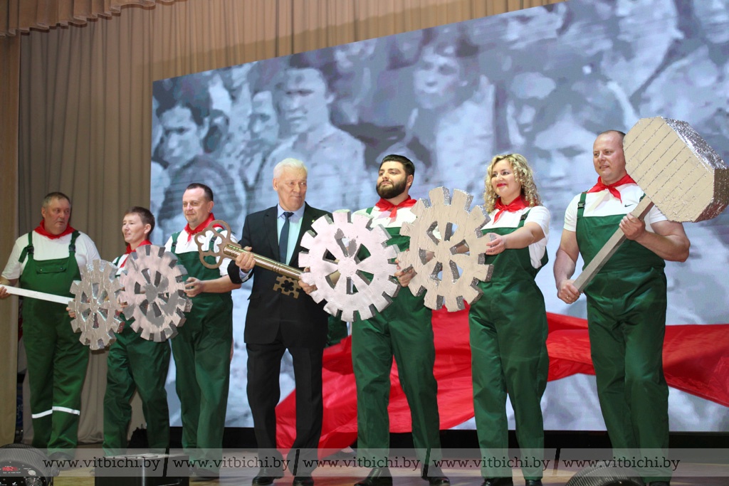 С какими бы номерами не выходили все команды на сцену, каждое выступление находило живой отклик у зрителей, над головой которых то и дело взмывали растяжки с оптимистичными девизами, шары с фирменным логотипом предприятия и белорусские флаги.