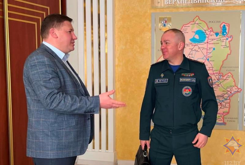 После беседы с жителями города Сергей Мелешкин встретился с председателем Верхнедвинского районного исполнительного комитета Шиловым Василием Николаевичем. На встрече обсуждались действия районных служб при ухудшении паводковой ситуации.